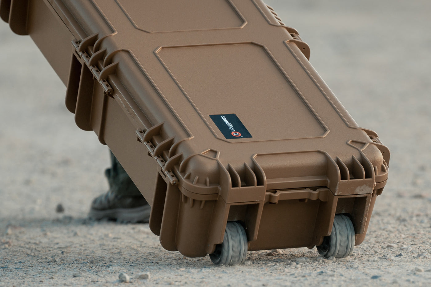 When time and efficiency matters most, Condition 1 reigns supreme. Our cases have locking lids so they don’t flip over, our latches are secure, yet quick and easy to open on close. Our larger and long cases feature heavy duty off-road style wheels to help navigate uneven and rocky terrain.