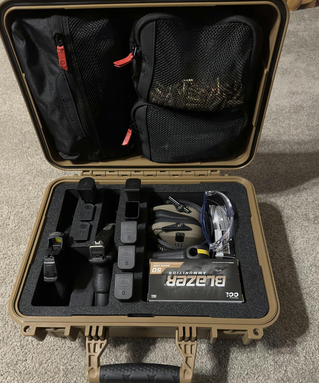 This 16" Case #179 has pre-cut foam for 2 pistols, 8 magazines and has a large dump pocket for accessories and range gear.