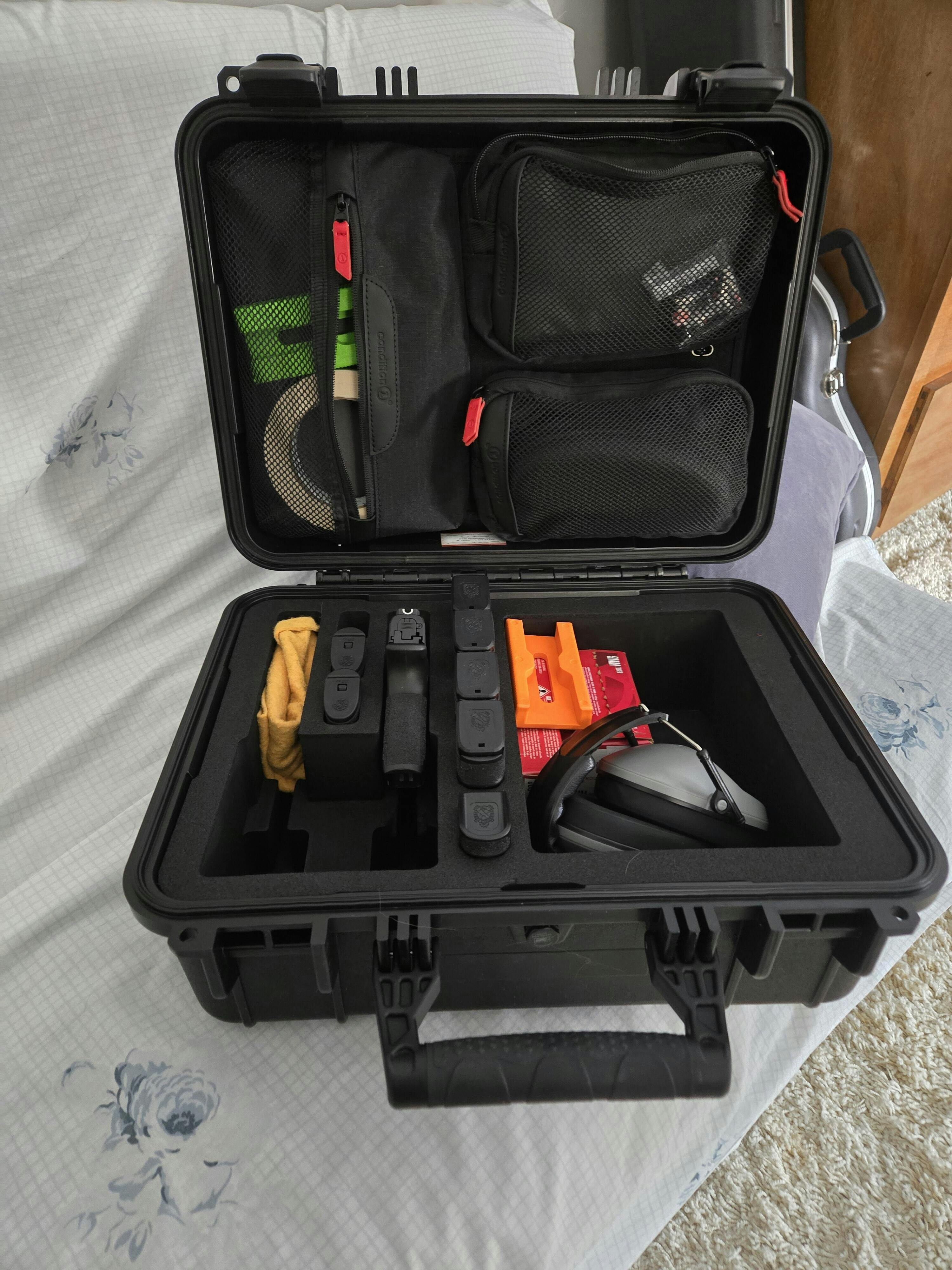 This 16" Case #179 has pre-cut foam for 2 pistols, 8 magazines and has a large dump pocket for accessories and range gear.