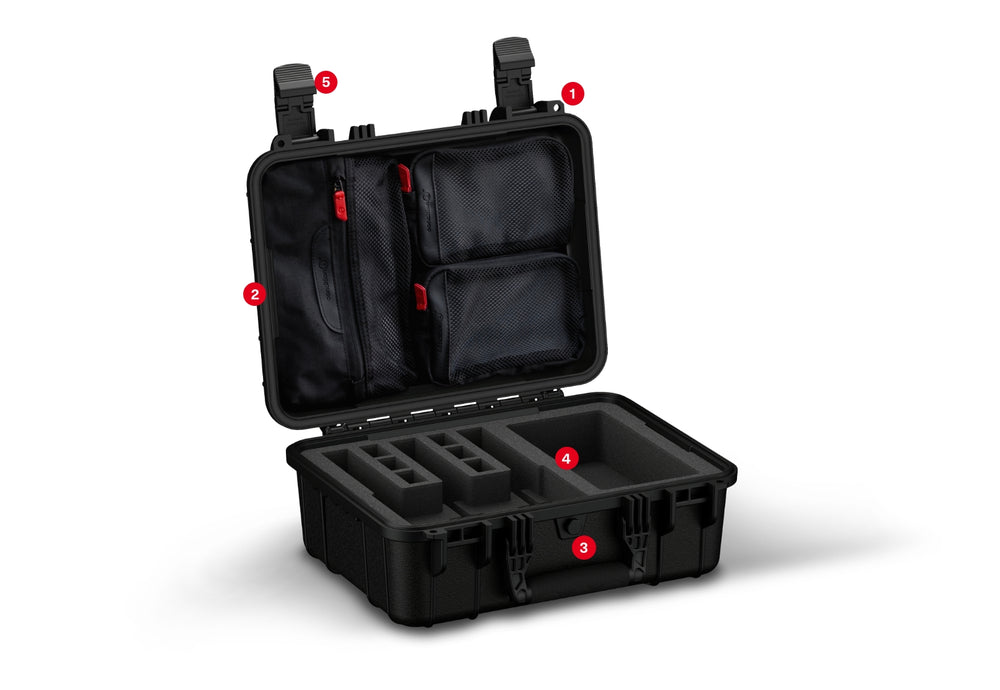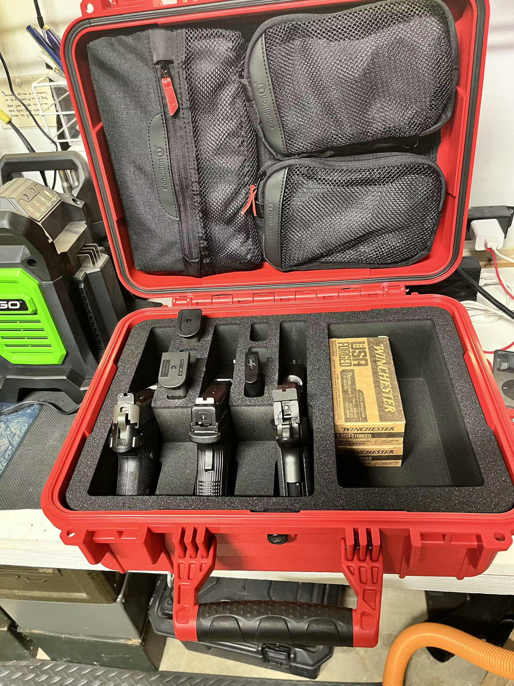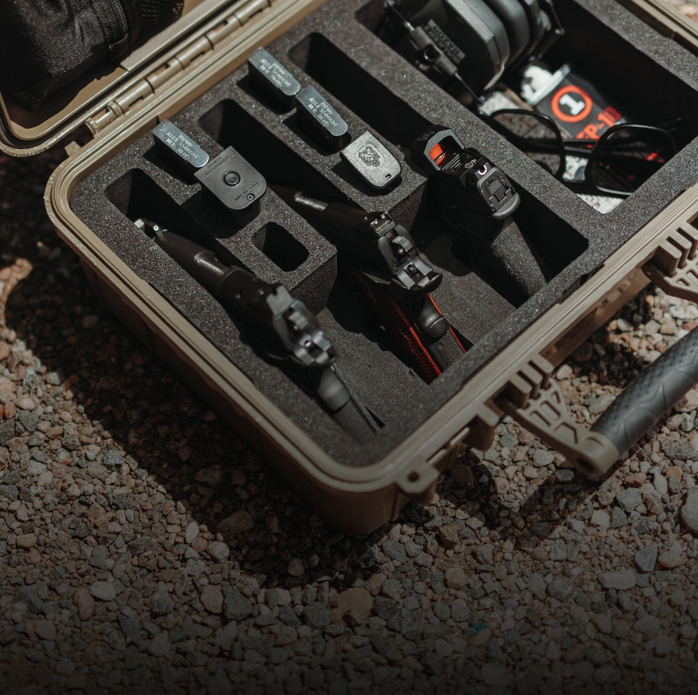 Pistol forms are 9.55” length, 1.25" wide at the barrel/muzzle, 1.63" wide at the Grip/butt and 5.25" depth clearance. Dump pocket is 8.92” x 4.65” x 5.25" depth clearance. Magazine forms are 0.875" x 1.25" x 5.25" depth clearance. The lid includes convoluted (egg-crate) foam or the lid organizer, depending on the option selected.