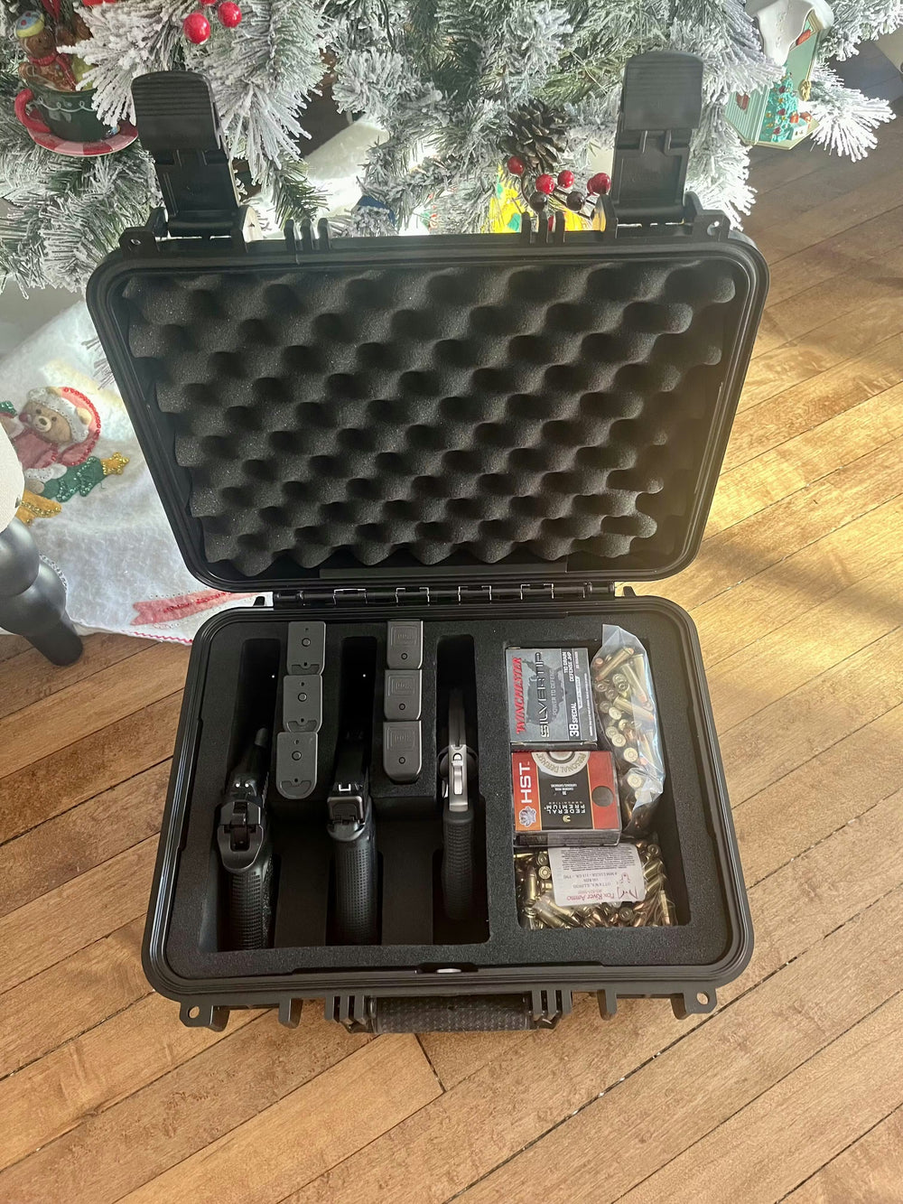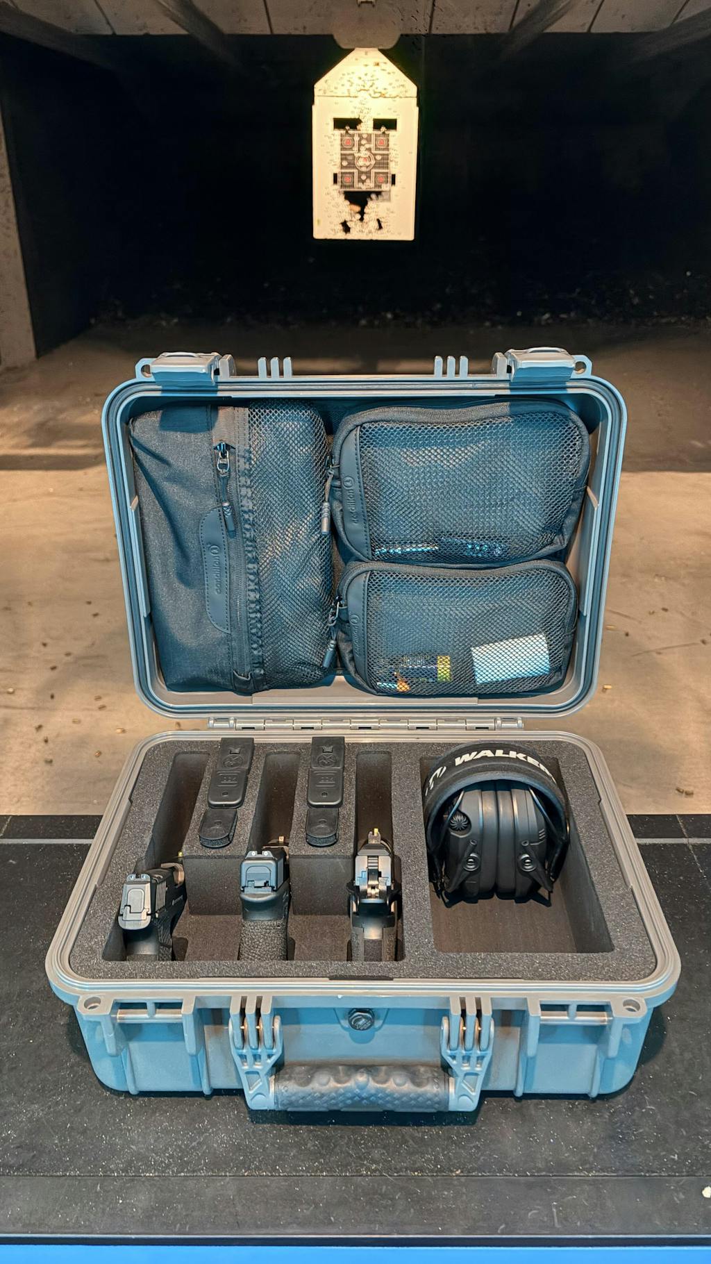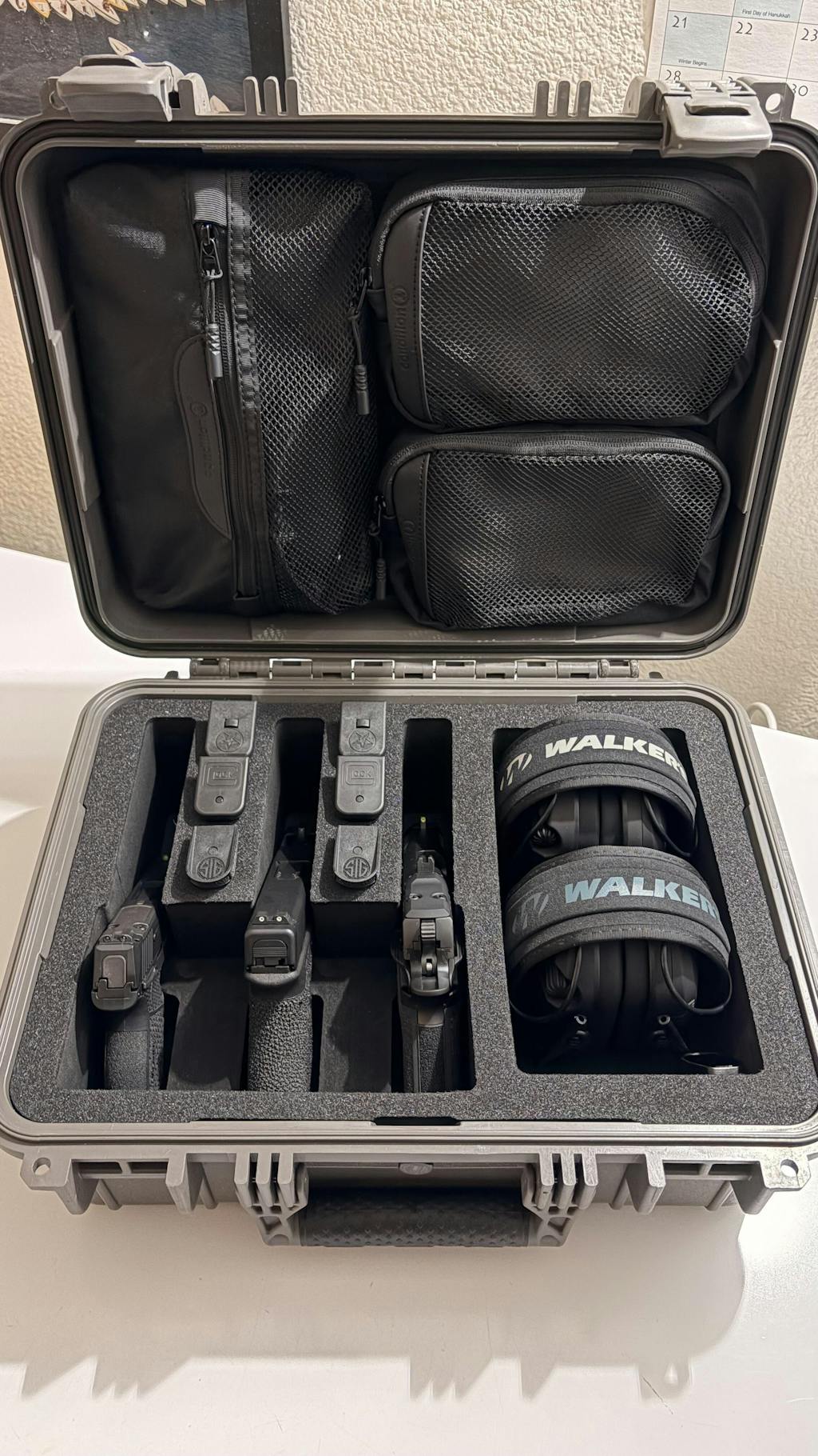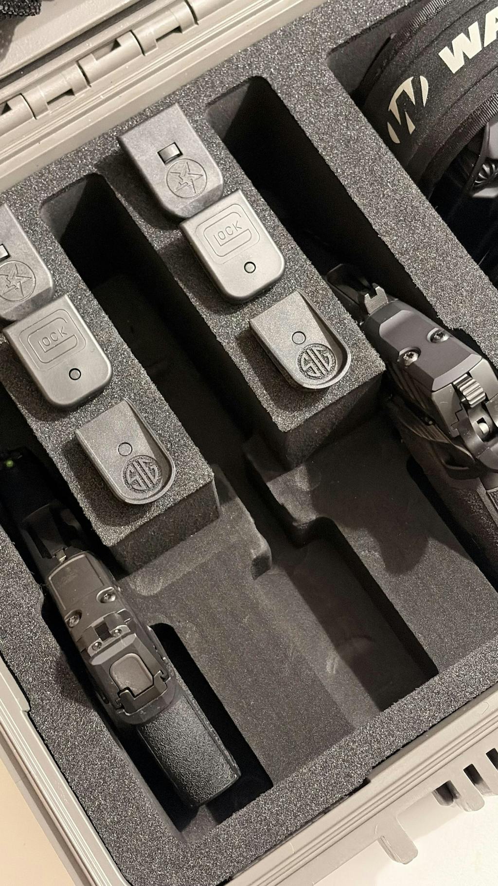This 16" Case #179 has pre-cut foam for 3 pistols, 6 magazines and has a large dump pocket for accessories.