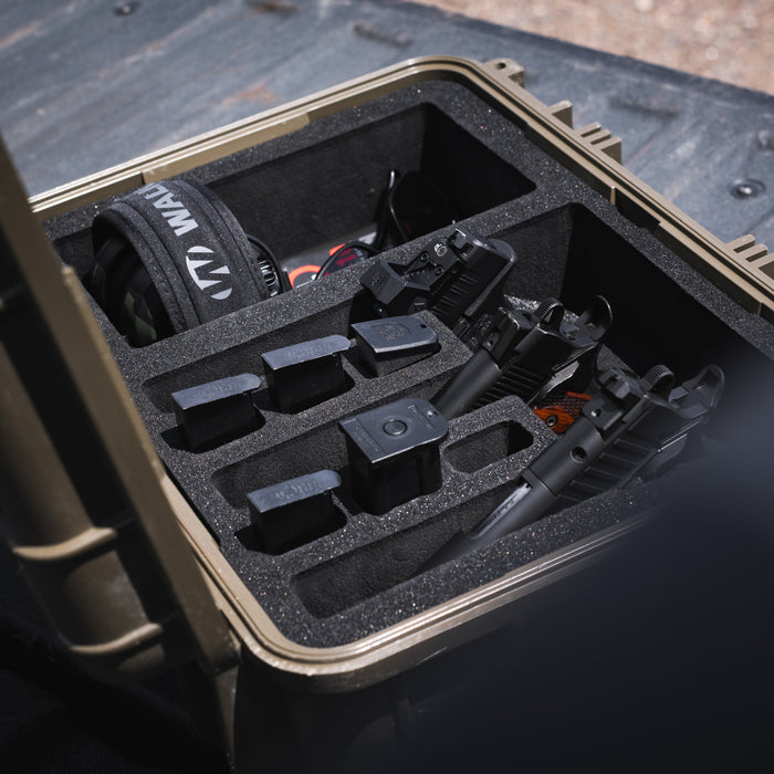 9. Pre-Cut Foam: Holds 3 pistols and 23 magazines.