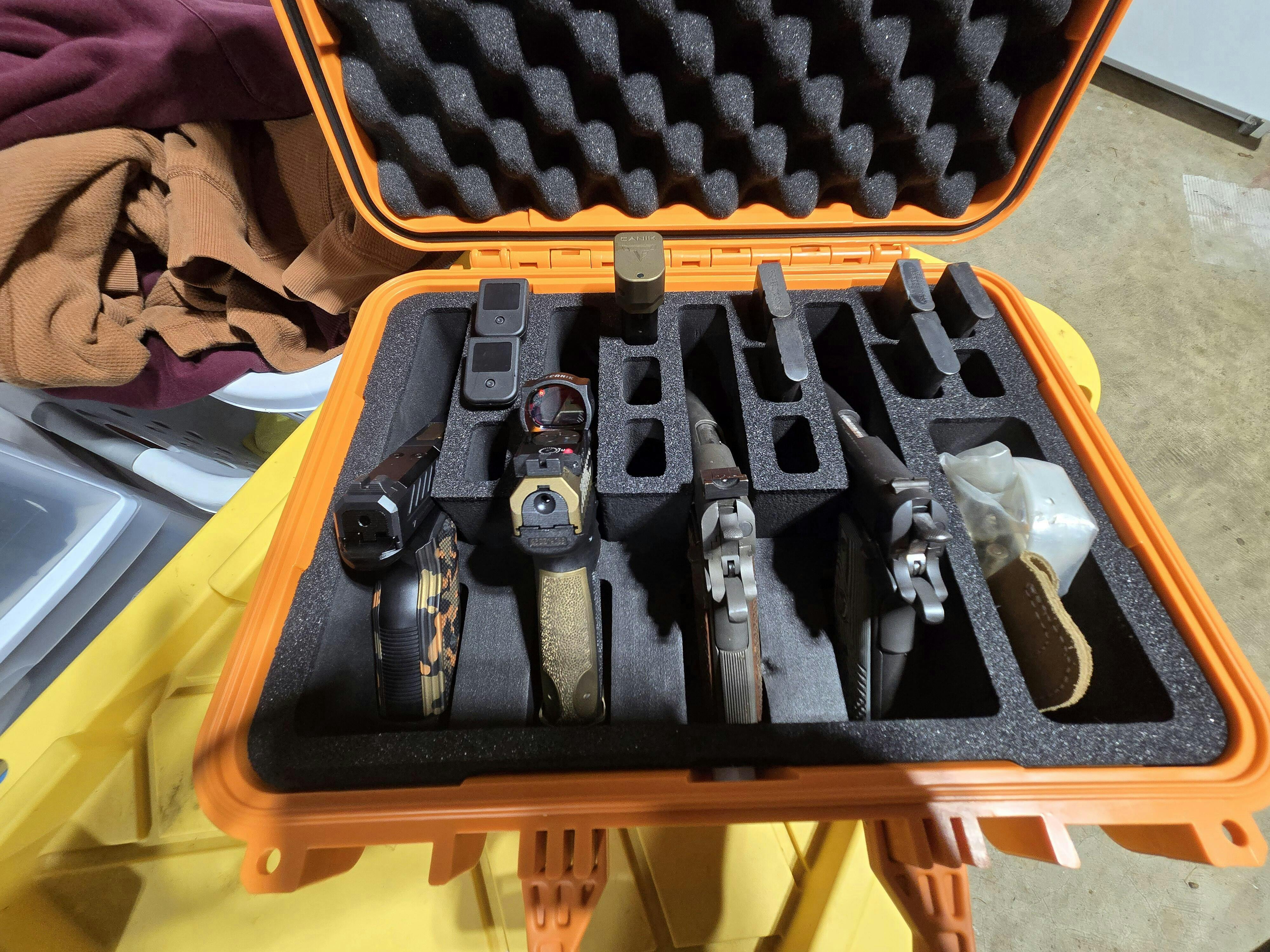 This 16" Case #179 has pre-cut foam for 4 pistols, 13 magazines and has a small dump pocket for accessories.