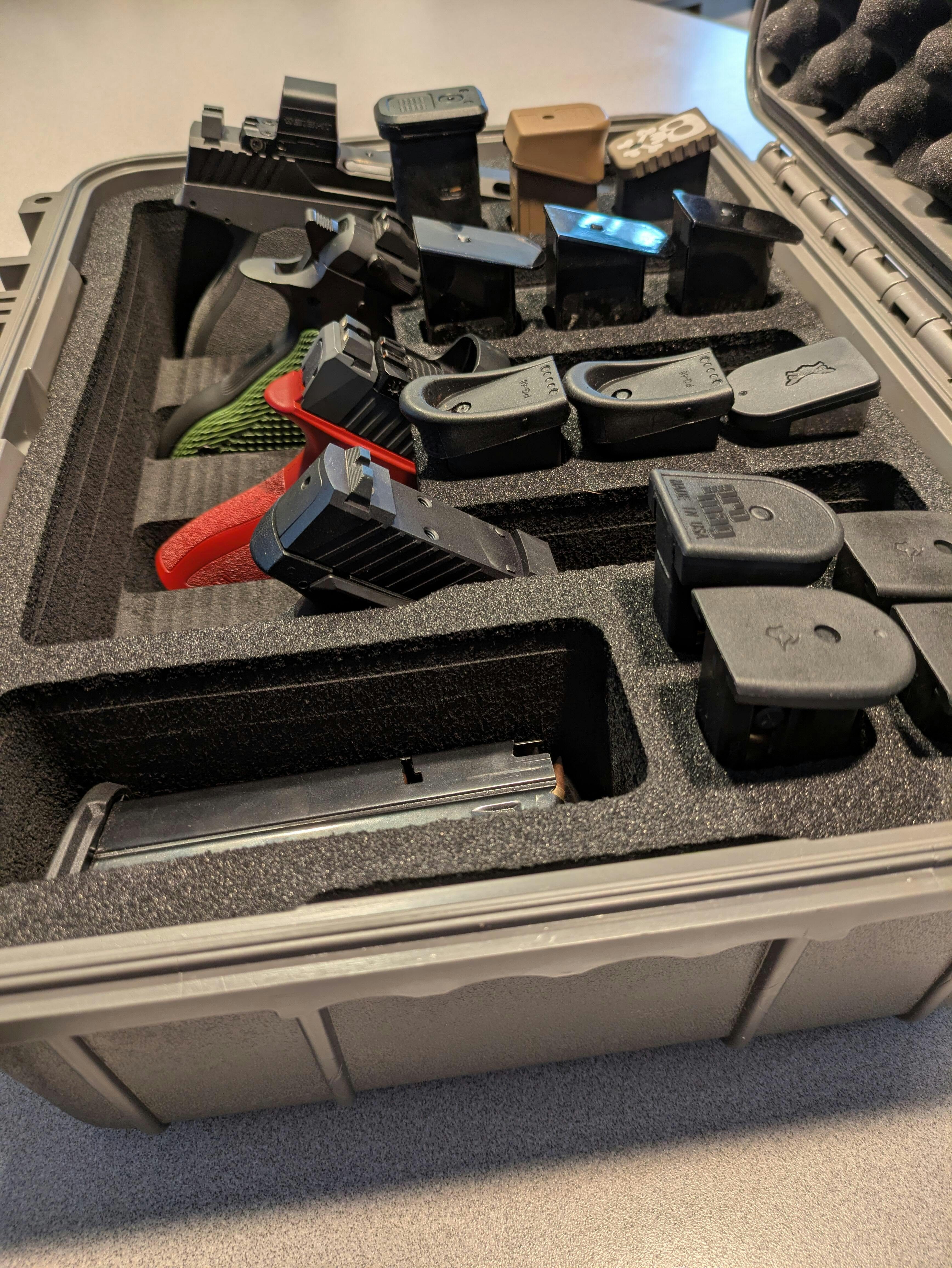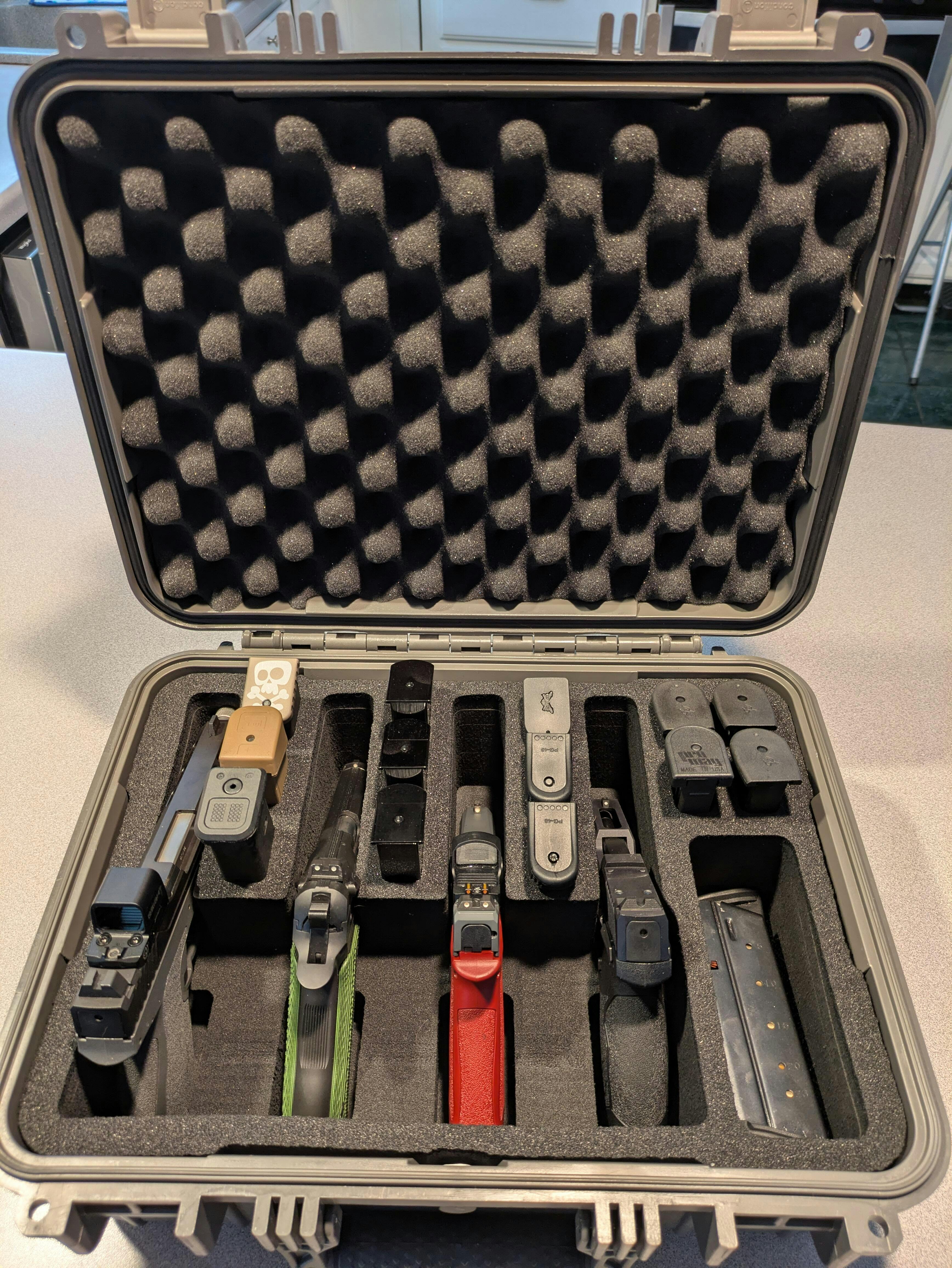9. Pre-Cut Foam: Holds 4 pistols, 12 magazines and accessories.