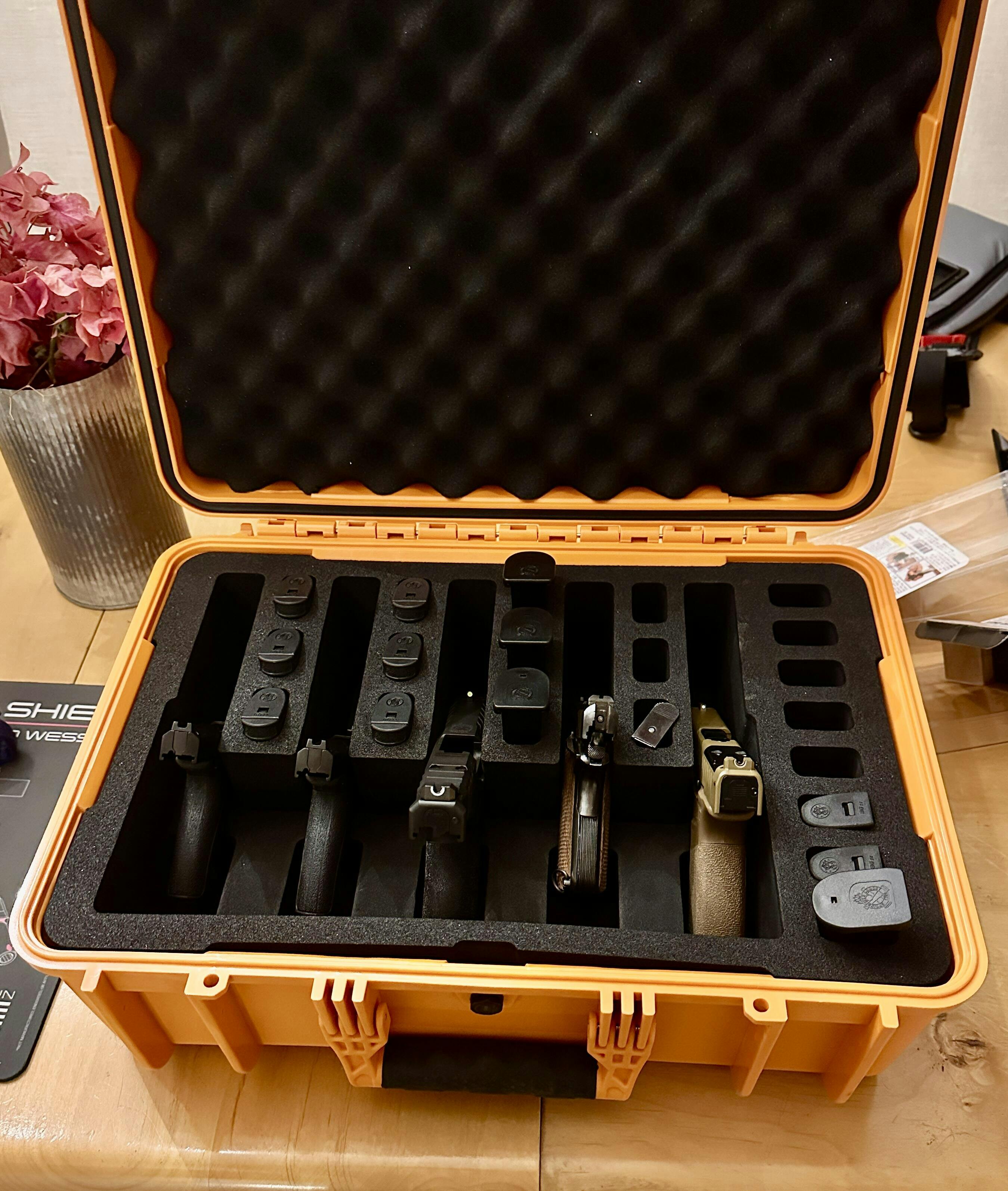 9. Pre-Cut Foam: Holds 5 pistols and 20 magazines.