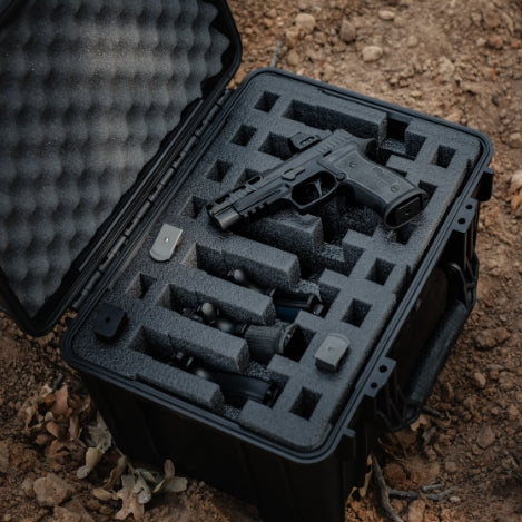 9. Pre-Cut Foam: Holds 7 pistols and 14 magazines.