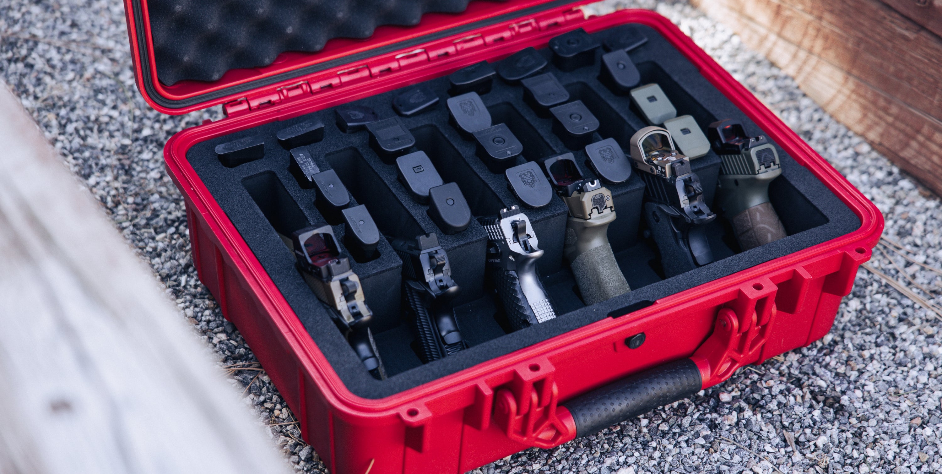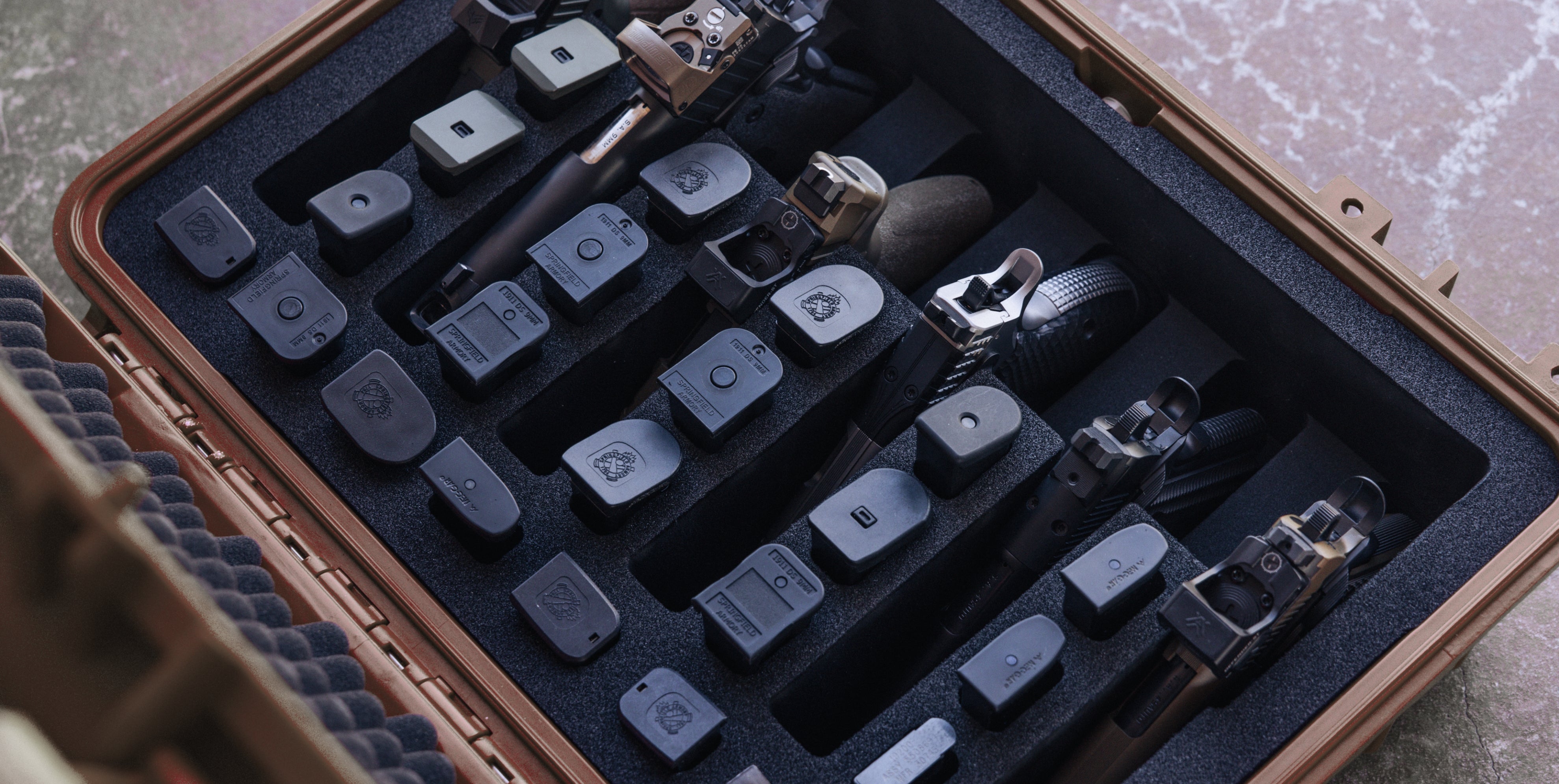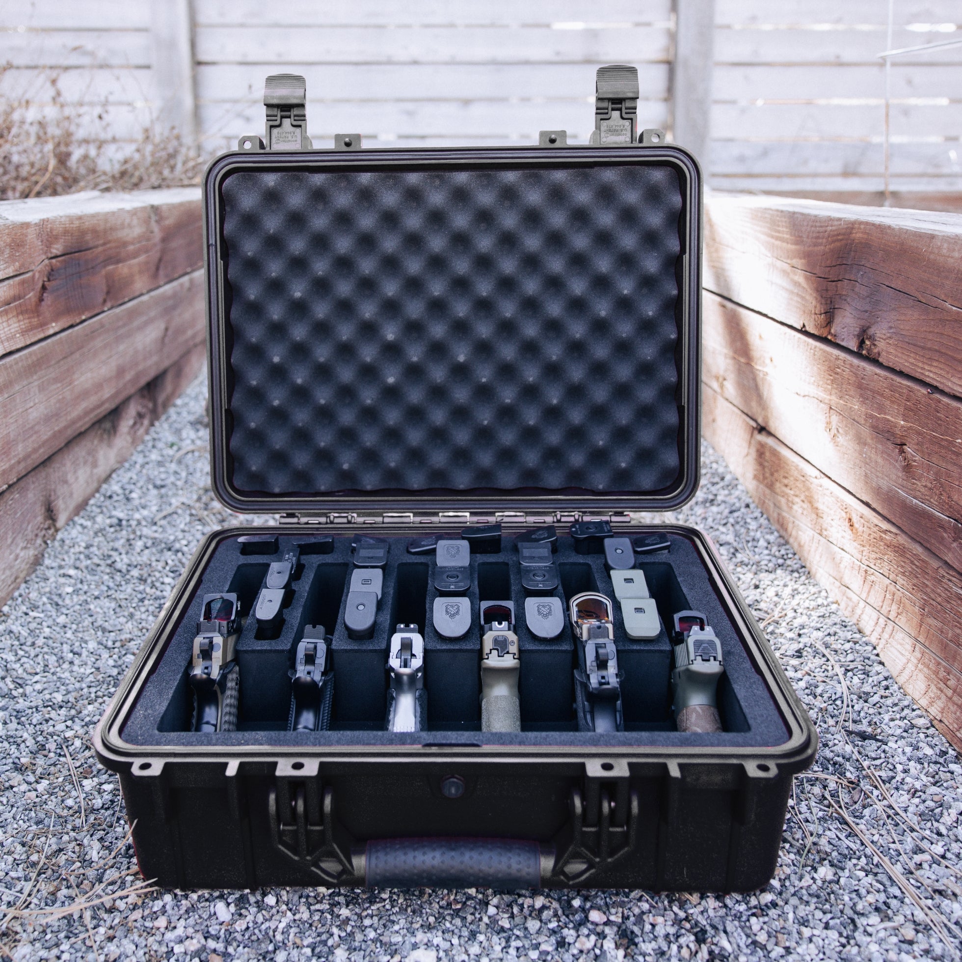 9. Pre-Cut Foam: Holds 6 pistols and 27 magazines.