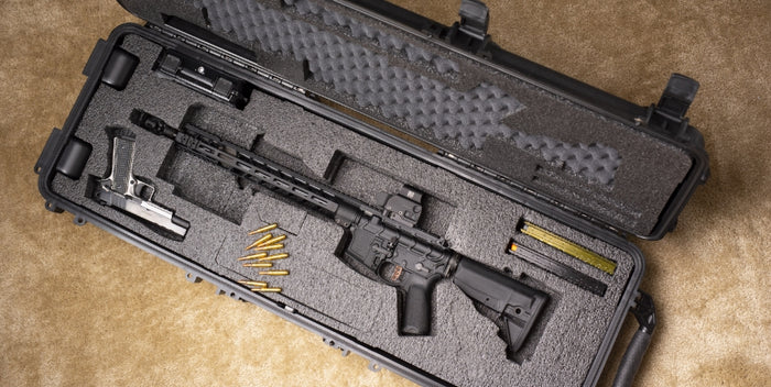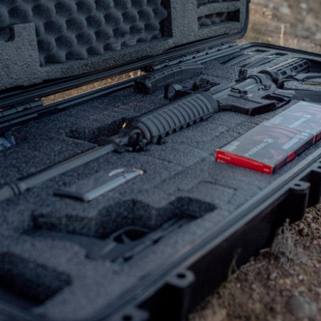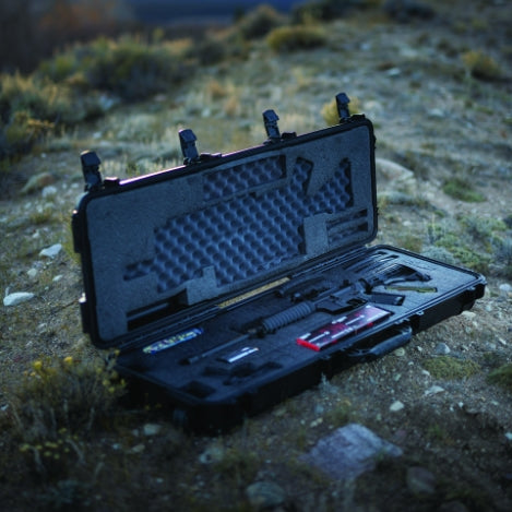 This 45-inch #1229 model hard case has pre-cut foam ready for your AR-15 (max overall rifle length of 34.8"). It can accommodate wide range of optics, under or over barrel attachments like flashlights and lasers. Great for going to the range and for storing your weapon.