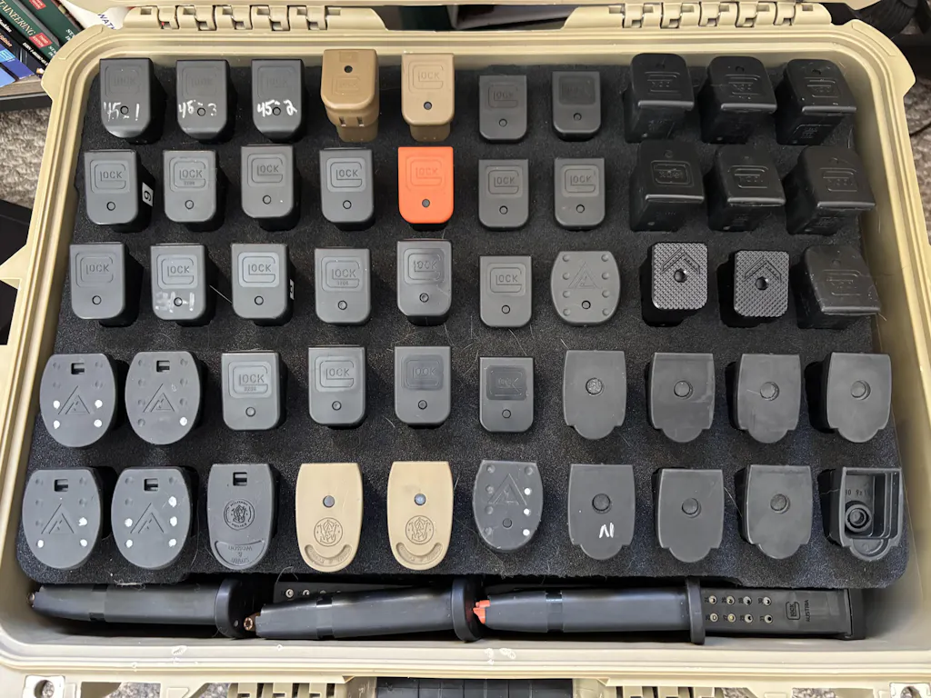 Pre-cut foam is assembled to hold 50 magazines.