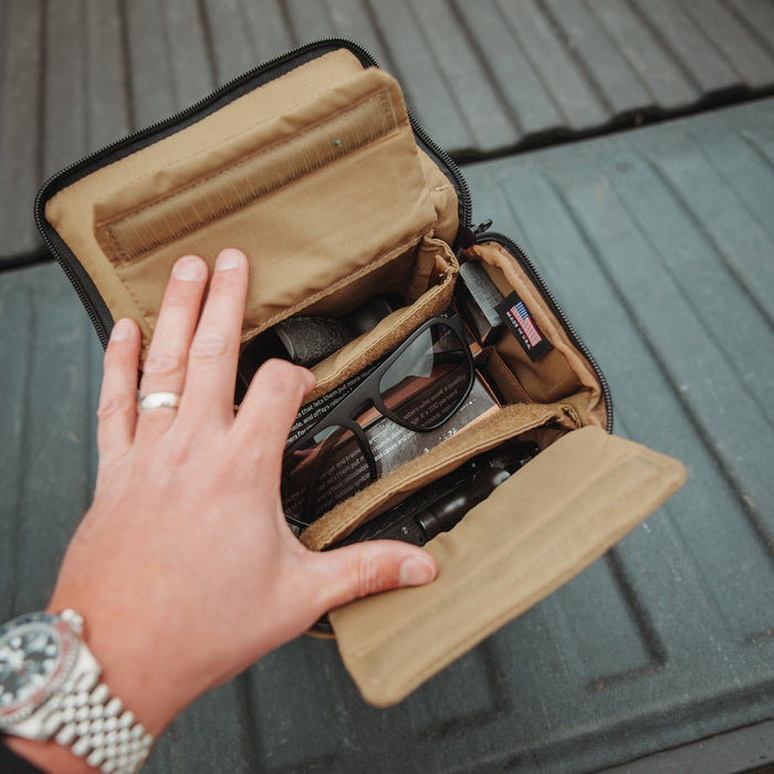 I got this as a gift for my husband, he loves it! He used the top handle and hung it on the backside of the headrest in his truck, the top-loading pouch allows for easy access. MADE IN USA, count us in! Thanks for a great product Condition 1 team, you guys nailed it with this.