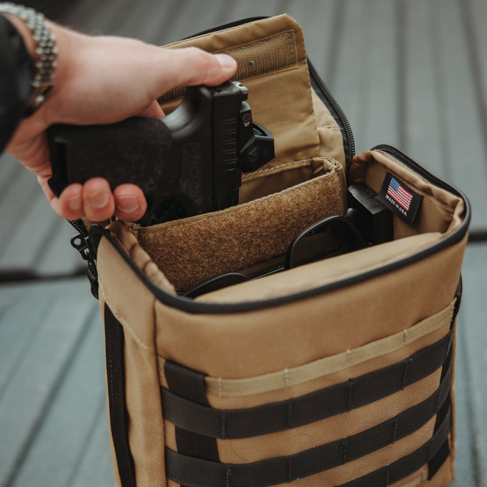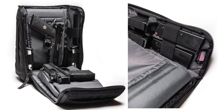 • Handmade in Sherman, Texas, this ain't your average pistol bag. This patent pending design has nearly 50 years of American craftsmanship behind it, this beast is built to last generations. This bag is wrapped in 1000D PU coated Cordura Nylon – which is badass if you didn't know.