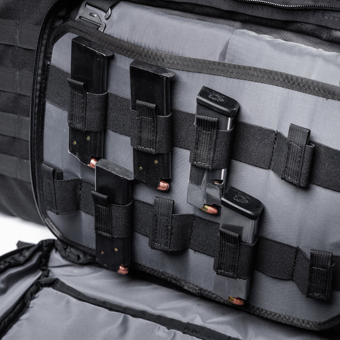 The Lone Star 36" Rifle Bag holds 2 carbines or tactical rifles with dedicated spots for 12 mags, plus room for 2 full-size pistols and 20 mags — because firepower matters. Want all of you gear in one bag? Of course you do. Toss your ear and eye protection in their dedicated locations and hit the range organized and ready to train.