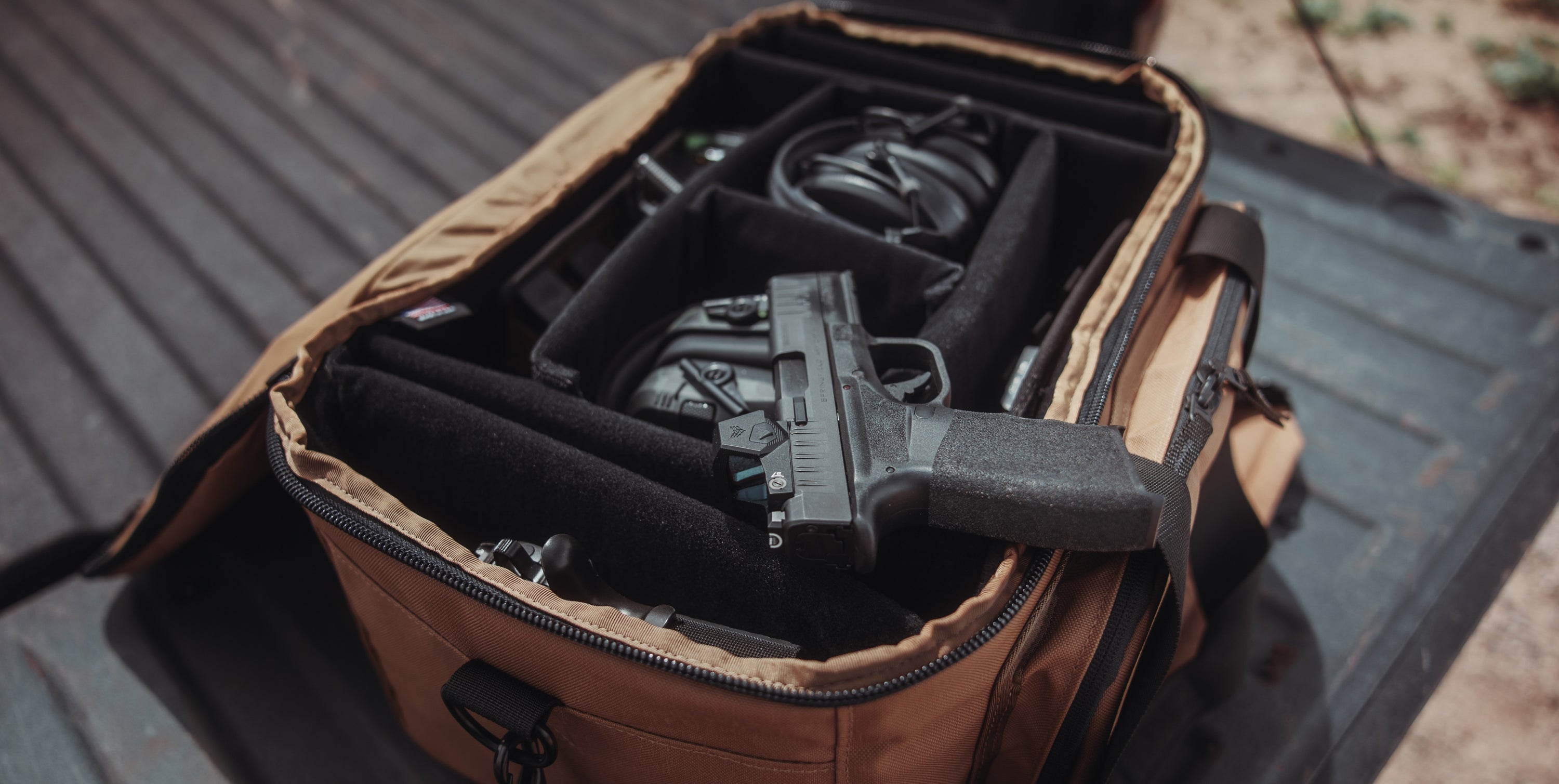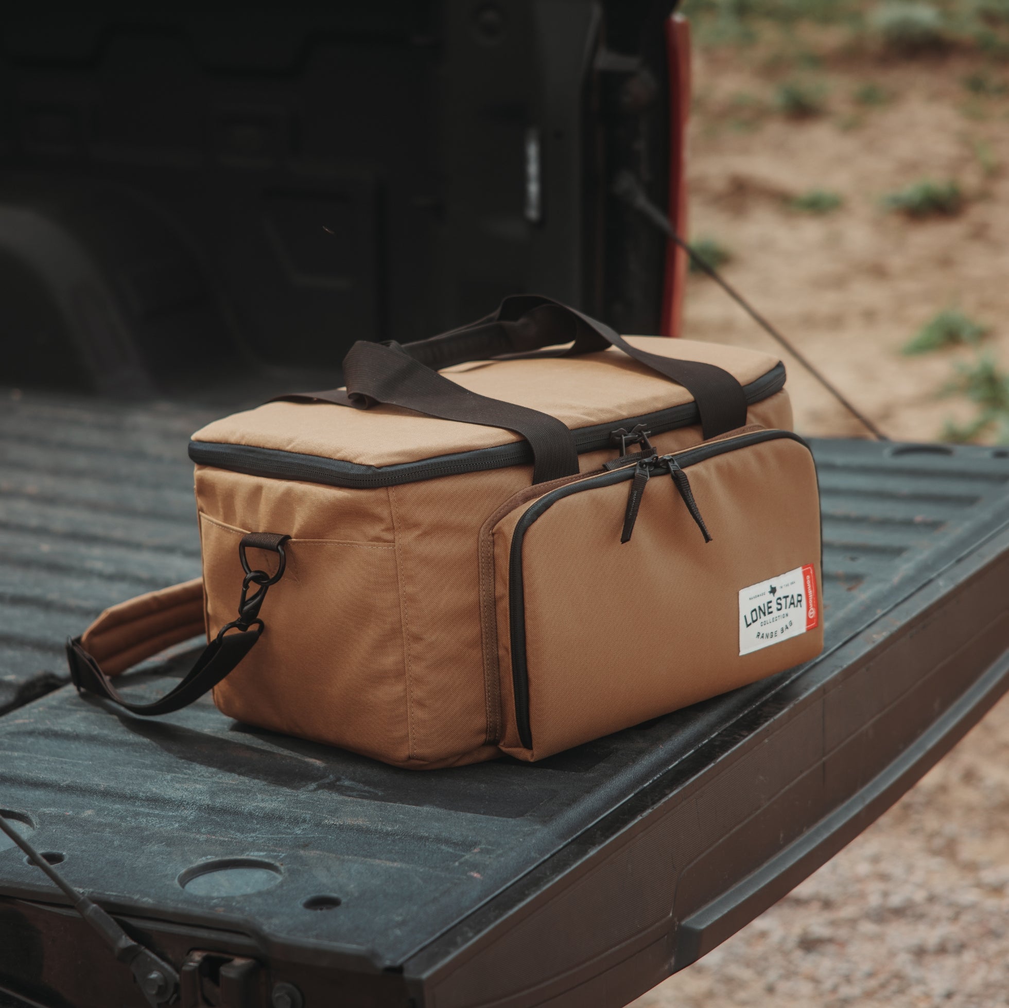 The Lone Star Range Bag comes with padded compartments for 4 full size pistols, and plenty of configurable space for all your range day accessories. Toss in your tools, ammo, ear & eye protection and your confidence – this bag can hold everything you need for a day at the range and is handmade in Sherman, Texas.